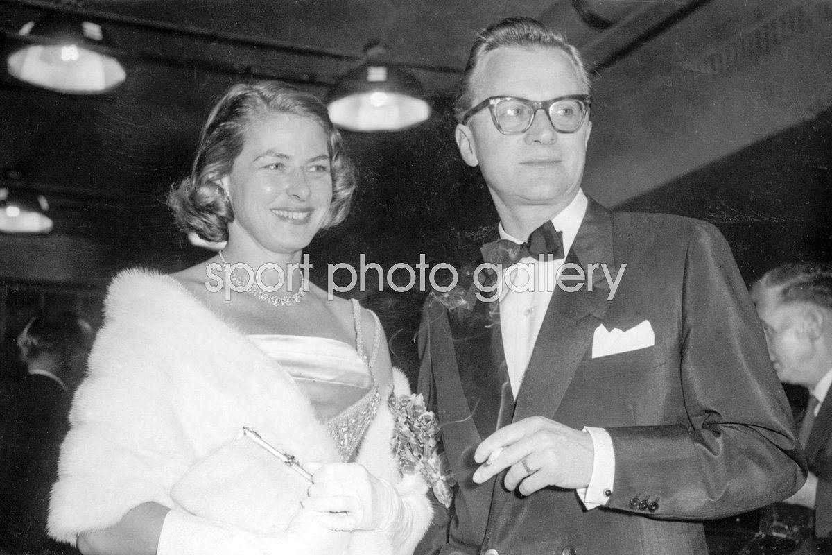 Ingrid Bergman (1915 - 1982) arrives at the Odeon Leicester Square for the premiere of 'The Inn of the Sixth Happiness'. With her is her fiance Lars Schmidt. Code: 3227634