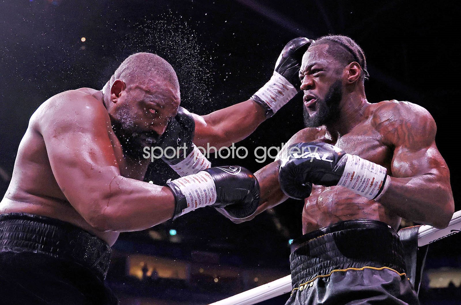 Deontay Wilder punches Derek Chisora during the Heavyweight fight between Derek Chisora and Deontay Wilder as part of the Dereck Chisora v Deontay Wilder: 100 fight night at The O2 Arena on April 04, 2026 in London, England. (Photo by Richard Pelham/Getty Images)