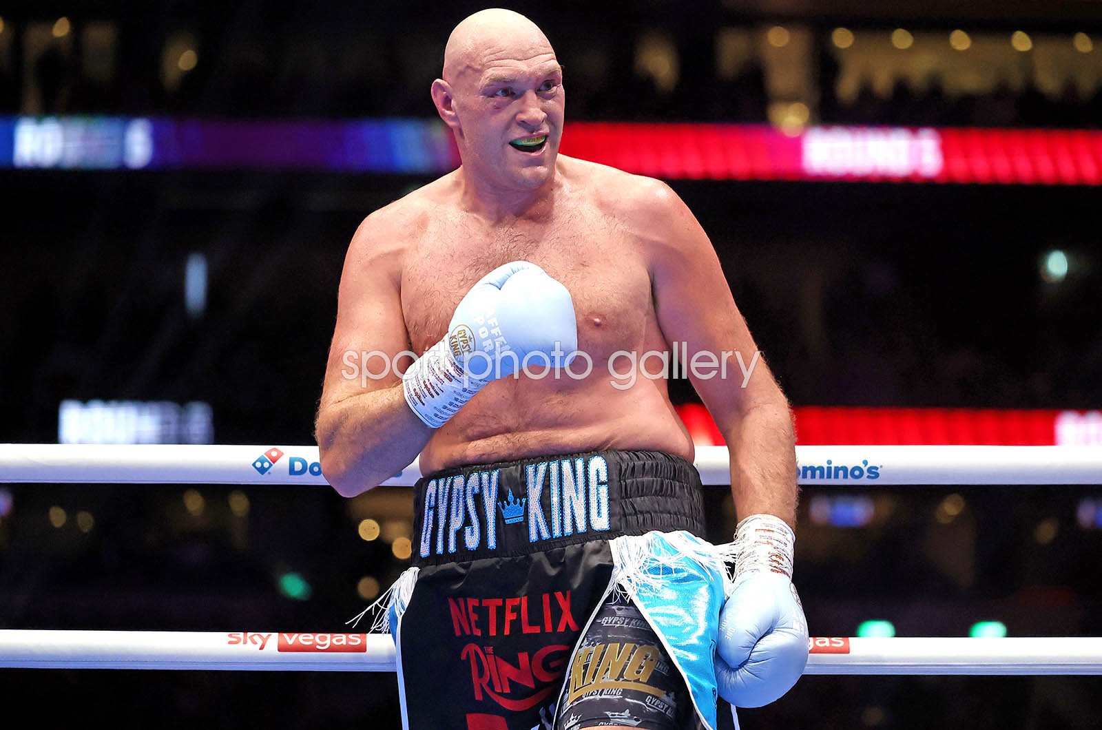 Tyson Fury looks on during the Heavyweight fight between Tyson Fury and Arslanbek Makhmudov at Tottenham Hotspur Stadium on April 11, 2026 in London, England. (Photo by Richard Pelham/Getty Images for Netflix) Code: 2270904574