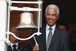 Sir Garfield Sobers rings the five minute bell in memory of Mohammed Ali during day two of the 3rd Investec Test match between England and Sri Lanka at Lord's Cricket Ground on June 10, 2016 in London, United Kingdom. Code: 539178542