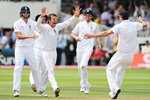 Graeme Swann of England celebrates the wicket of Mitchell Johnson of Australia with team mates during day five of the npower 2nd Ashes Test Match between England and Australia at Lord's on July 20, 2009 in London, England. (Photo by Mike Hewitt/Getty Images)