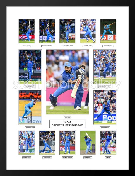 A stunning team special collage celebrating the brilliance of the current India One Day Cricket team showcasing their talents so spectacularly in the World Cup in 2023.