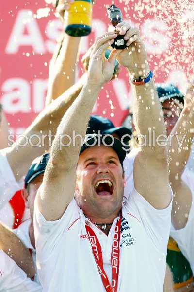 Andrew Strauss of England lifts the Ashes Urn after winning the npower 5th Ashes Test Match between England and Australia at The Brit Oval on August 23, 2009 in London, England. (Photo by Paul Gilham/Getty Images)