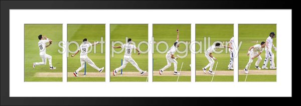 Trent Boult New Zealand Six Stage Bowling Action Sequence. This stunning six stage action collage captures the bowling technique of New Zealand's premier pace bowler. This exceptional technique has seen him take over 300 test wickets.