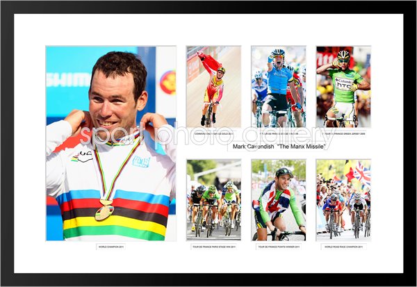 A fantastic montage of Mark Cavendish images to celebrate his historic win in the 2011 World Road Race to become the first British world champion in the event in 47 years. The other images illustrate the huge impact he has had on cycling in such a short time - his track gold for the Isle of Man at the Commonwealth Games in 2006 and of course his many stage wins in the Tour de France where he won the Green Points jersey in 2011.