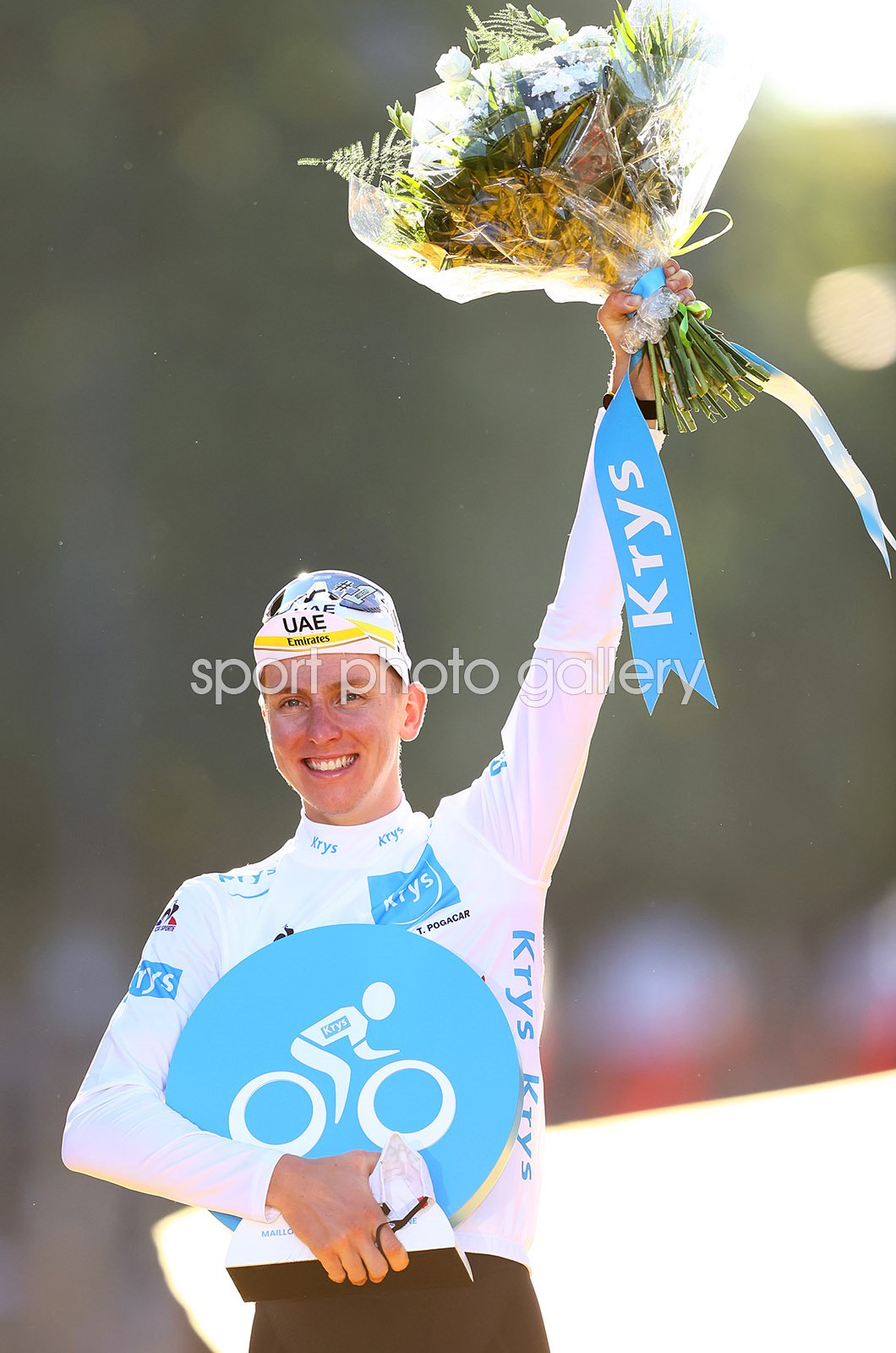 Tadej Pogačar of Slovenia and UAE-Team Emirates White Best Young Rider Jersey celebrates at podium during the 108th Tour de France 2021, Stage 21 a 108,4km stage from Chatou to Paris Champs-Élysées / @LeTour / #TDF2021 / on July 18, 2021 in Paris, France. (Photo by Michael Steele/Getty Images)