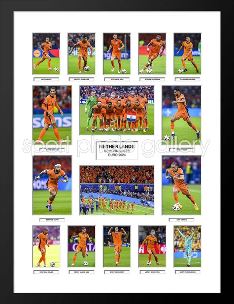 We are delighted to offer this stunning team special collage to celebrate the superb performance of the Netherlands to reach the semi finals of EURO 2024 in Germany. After a difficult group stage the team grew in stature and confidence, playing some attractive football in wins over Romania and Turkey in the knockout stages. The collage features great images of the key players together with team line up and celebration images in the centre of the collage.