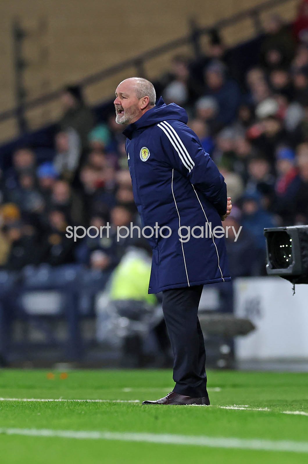 Steve Clarke, Head Coach of Scotland, shouts during the FIFA World Cup 2026 qualifier match between Scotland and Denmark at Hampden Park on November 18, 2025 in Glasgow, Scotland. (Photo by Ian MacNicol/Getty Images)