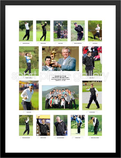 A selection of images celebrating Europe's memorable win in the 2010 Ryder Cup at Celtic Manor. The montage contains a photo of the 12 players who took part together with an extra image of Graeme McDowell who claimed the winning point and captain Colin Montgomerie. *** The photo only option comes as a single 28" x 20" print with all the player names and caption information in place
