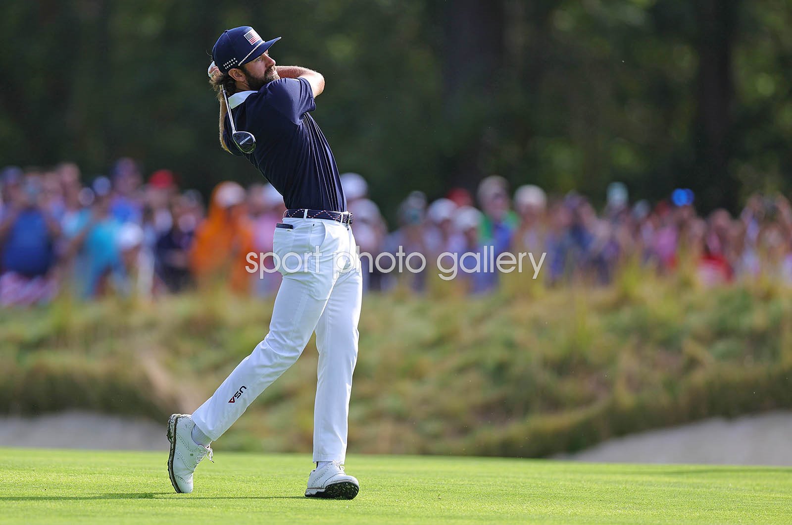 Cameron Young of Team United States plays his second shot on the 13th hole during the Saturday morning foursomes matches of the 2025 Ryder Cup at Black Course at Bethpage State Park Golf Course on September 27, 2025 in Farmingdale, New York. (Photo by Andrew Redington/Getty Images)
