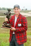 Jim Furyk celebrates with the trophy after winning on the second playoff hole at the RBC Heritage at Harbour Town Golf Links on April 19, 2015 in Hilton Head Island, South Carolina. (Photo by Streeter Lecka/Getty Images) Code: 470367520