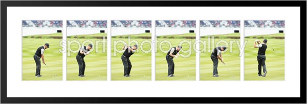A 6 stage swing sequence of Ryder Cup legend and European Tour great Lee Westwood of England. The sequence was taken during the Pro-Am prior to the BMW PGA Championship at Wentworth on May 25, 2016 in Virginia Water, England.