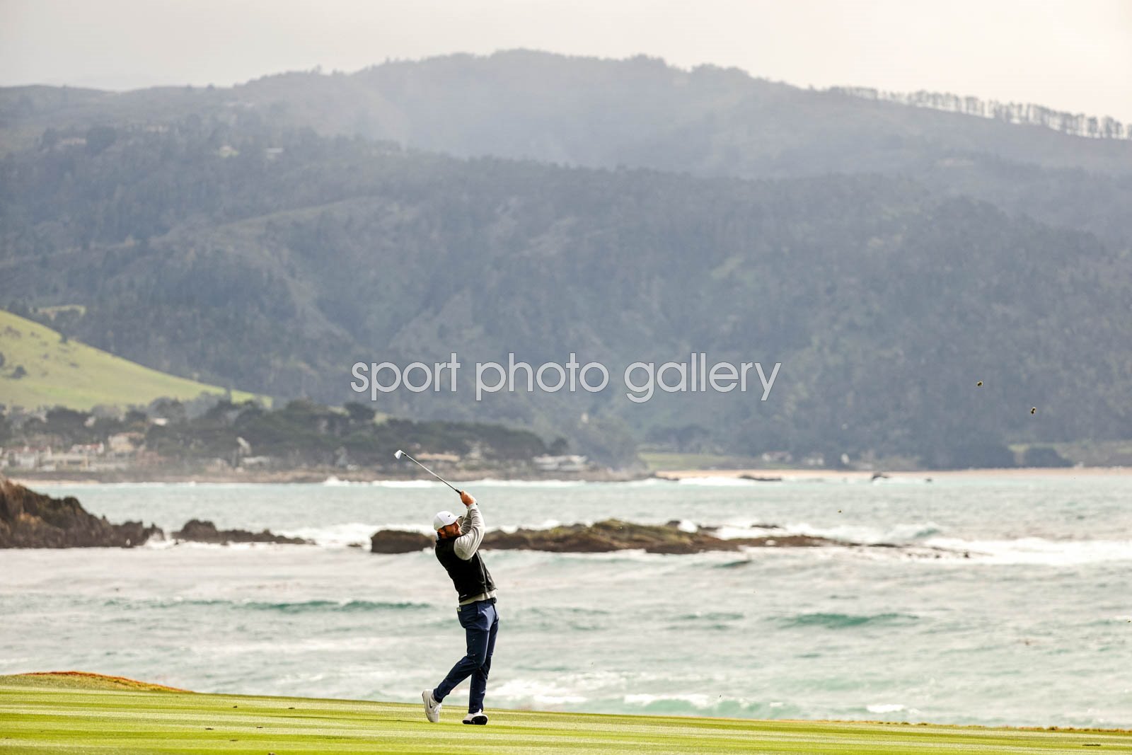 Scottie Scheffler of the United States plays a shot on the 18th hole during the final round of the AT&T Pebble Beach Pro-Am 2026 at Pebble Beach Golf Links on February 15, 2026 in Pebble Beach, California. (Photo by Mike Mulholland/Getty Images) Code: 2261833773