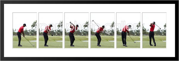 A stunning 6 stage sequence of a resurgent Tiger Woods of the United States captured at the 2018 Players Championship at the TPC in Sawgrass, Florida. The rear view sequence captures the key stages of Tiger’s swing as he hits a driver wearing his trademark final round red shirt.
