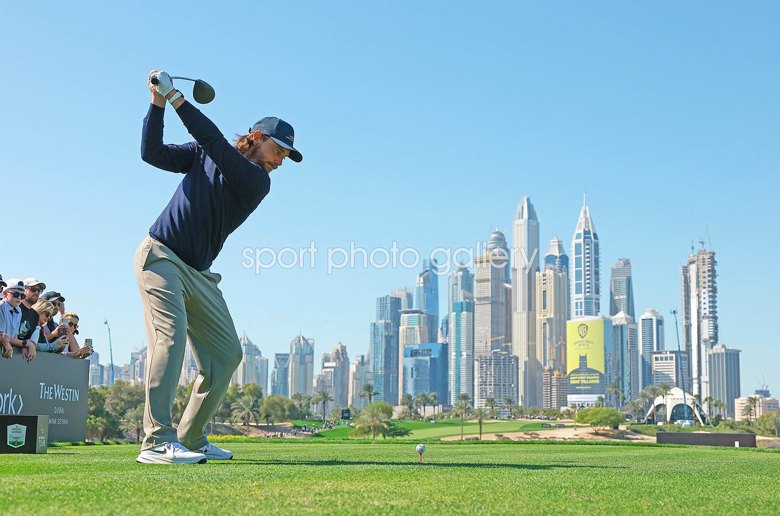 Tommy Fleetwood of England tees off on the eighth hole, during day one of the Hero Dubai Desert Classic 2026 at Emirates Golf Club on January 22, 2026 in Dubai, United Arab Emirates. (Photo by Andrew Redington/Getty Images) Code: 2257535630