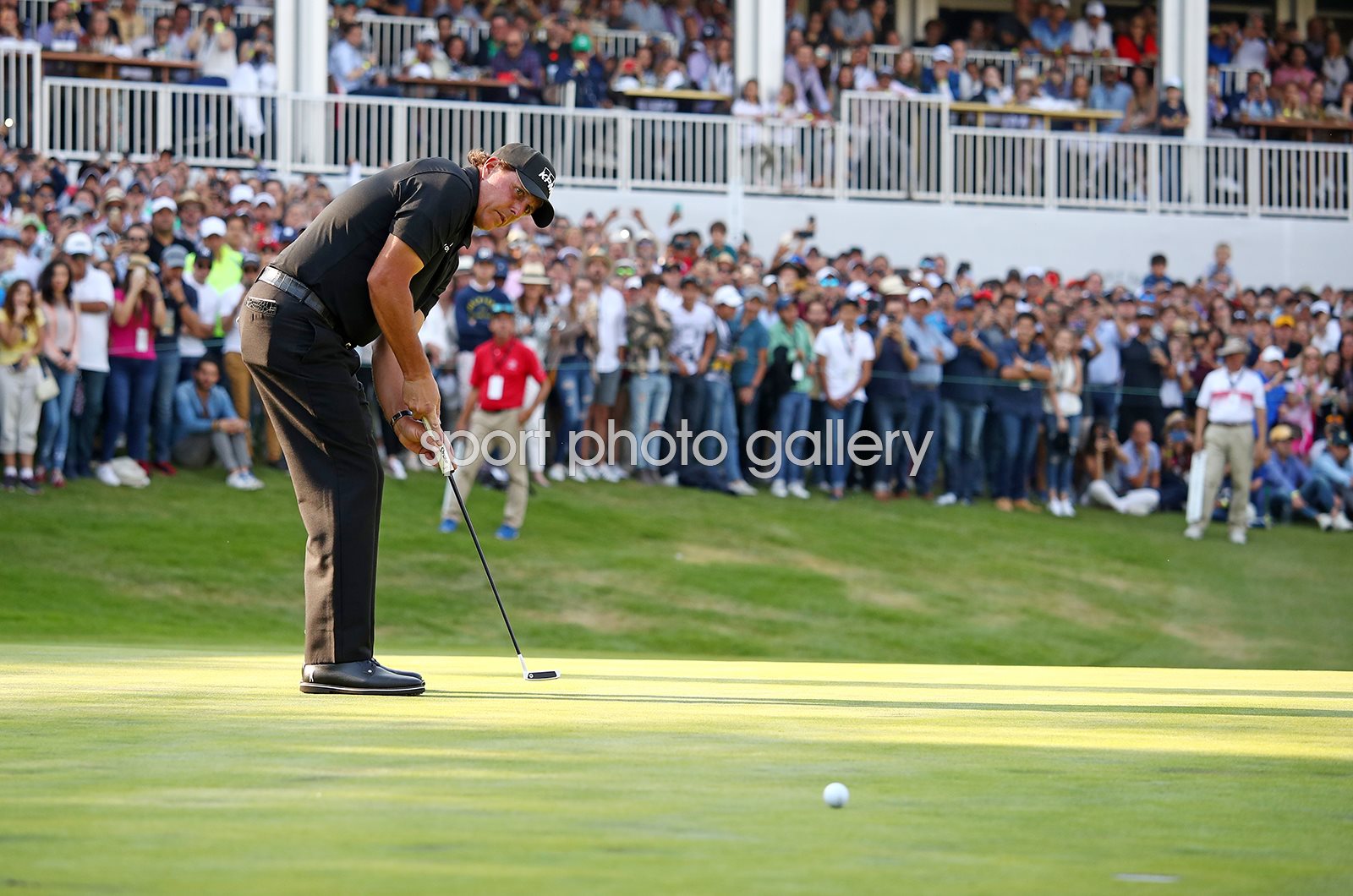 Phil Mickelson misses a putt on the 17th green during the final round of World Golf Championships-Mexico Championship at Club De Golf Chapultepec on March 4, 2018 in Mexico City, Mexico. (Photo by Gregory Shamus/Getty Images) Code: 927238700