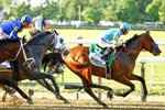 Jockey Victor Espinoza rides atop American Pharoah #5 during the 147th running of the Belmont Stakes at Belmont Park on June 6, 2015 in Elmont, New York. (Photo by Al Bello/Getty Images) Code: 476223832