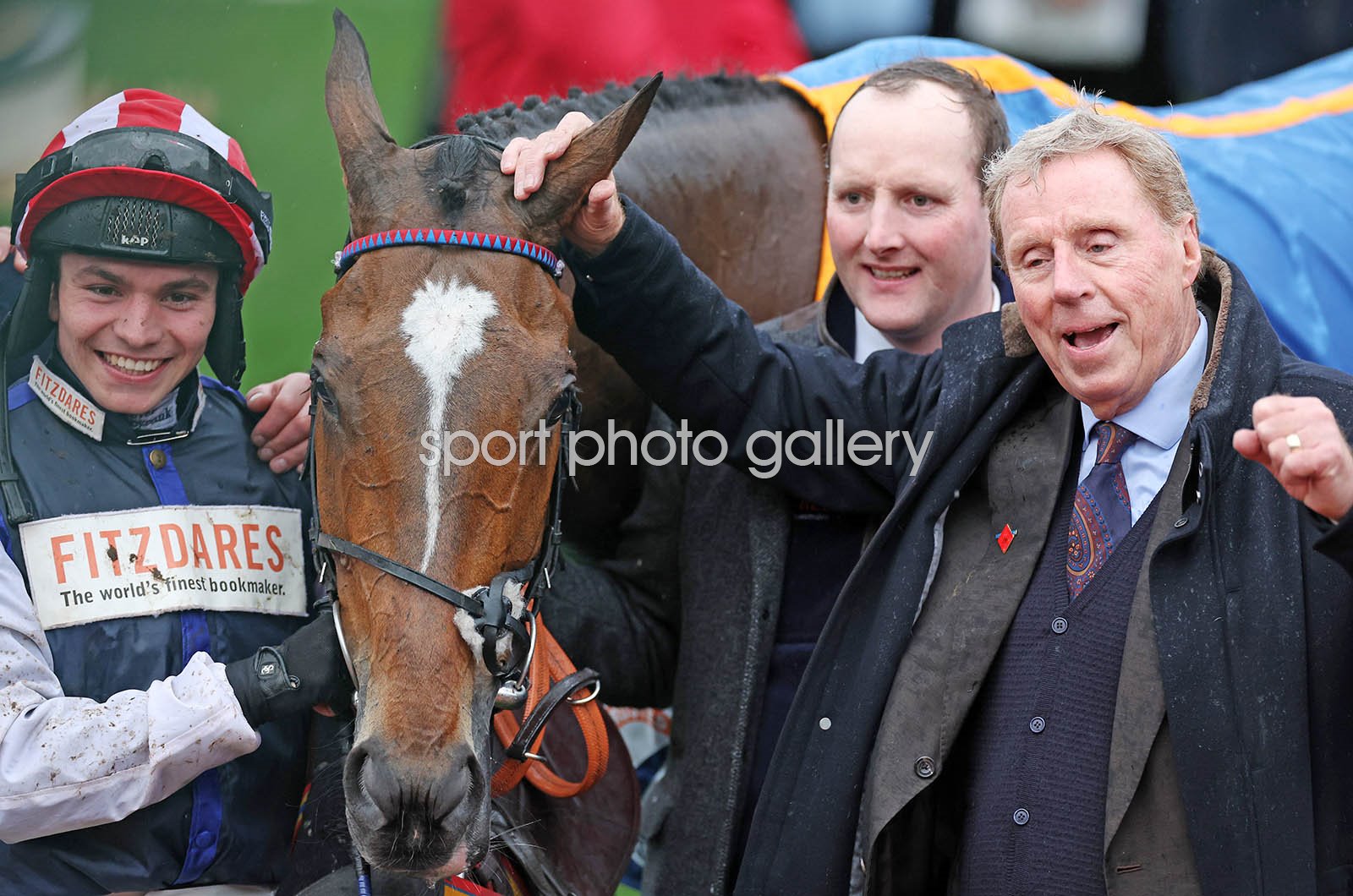 Ben Jones celebrates with Owner Harry Redknapp after winning the TrustATrader Plate Handicap Chase on board Shakem Up'arry during day three of the Cheltenham Festival 2024 at Cheltenham Racecourse on March 14, 2024 in Cheltenham, England. (Photo by Michael Steele/Getty Images)
