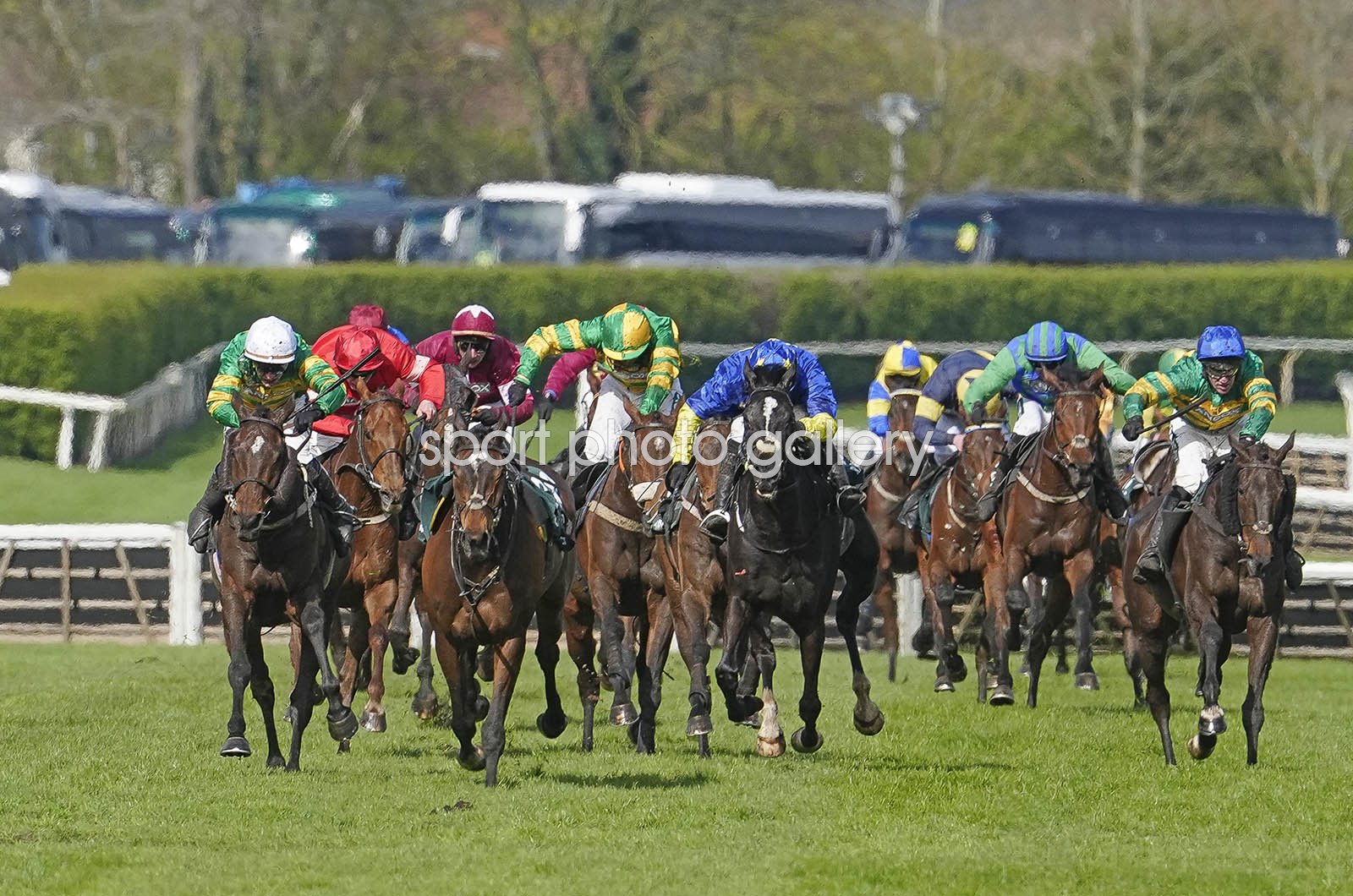 Paul Townend riding I Am Maximus (L, white cap) win The Randox Grand National Handicap Chase on Randox Grand National Day at Aintree Racecourse on April 11, 2026 in Liverpool, England. (Photo by Alan Crowhurst/Getty Images) Code: 2270867187