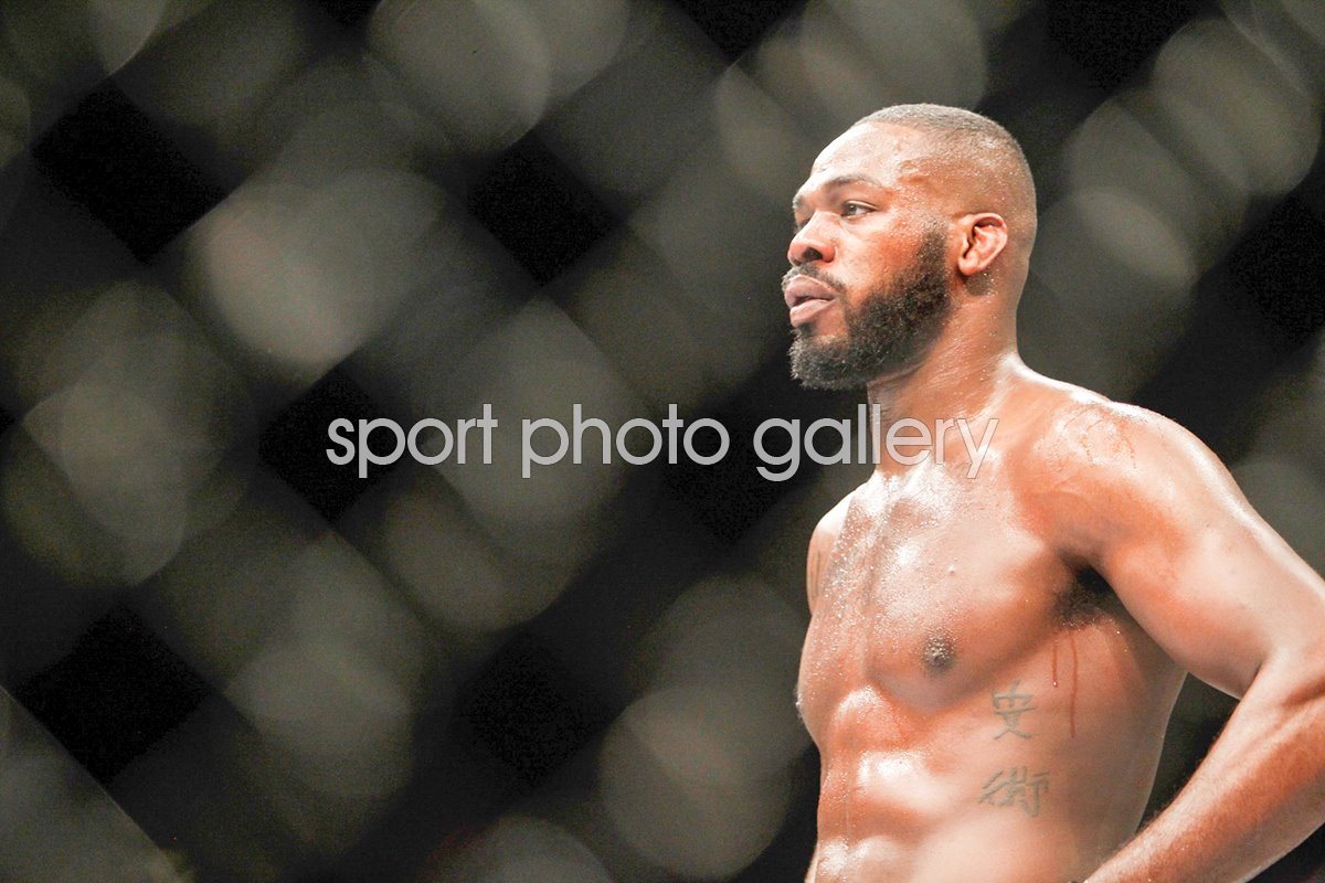 Light heavyweight champion Jon Jones waits in a timeout as he defends his title against Daniel Cormier during the UFC 182 event at the MGM Grand Garden Arena on January 3, 2015 in Las Vegas, Nevada. Jones retained his title by unanimous decision. (Photo by Steve Marcus/Getty Images)
