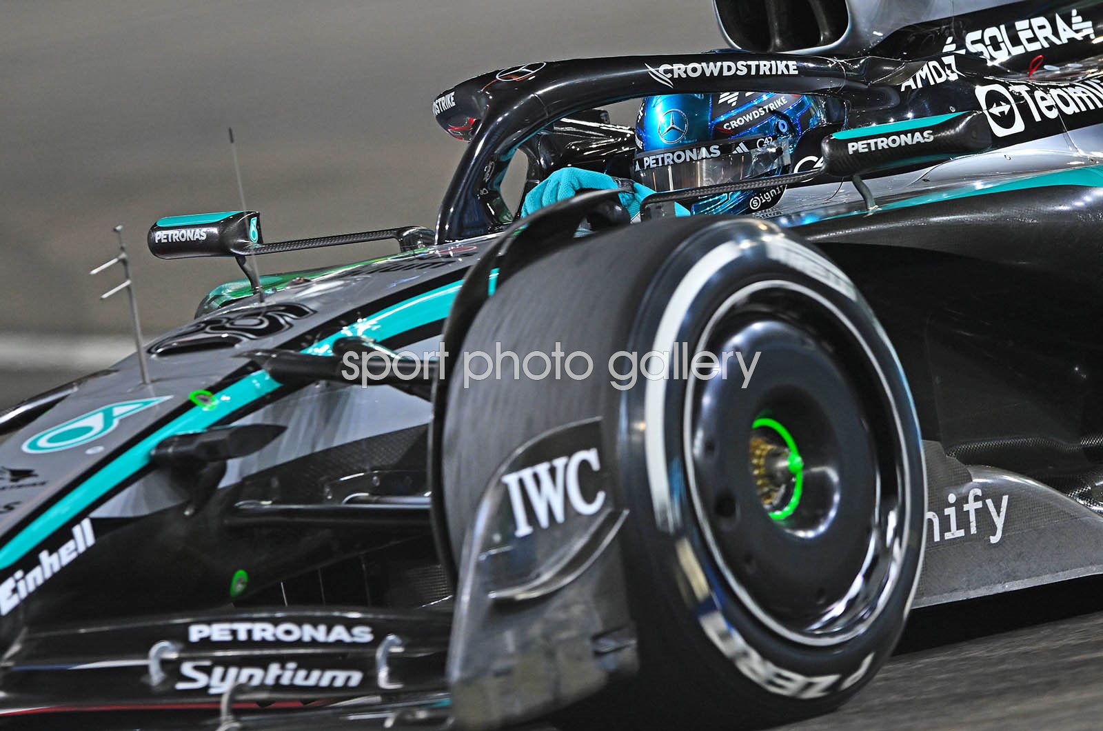 George Russell of Great Britain driving the (63) Mercedes AMG Petronas F1 Team W16 on track during the F1 Grand Prix of Singapore at Marina Bay Street Circuit on October 05, 2025 in Singapore, Singapore. (Photo by Rudy Carezzevoli/Getty Images)