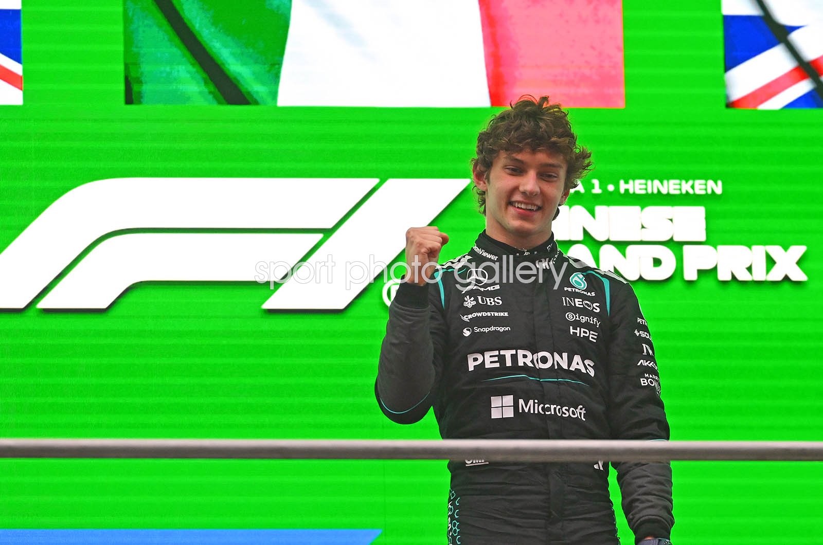Kimi Antonelli Italy & Mercedes celebrates Chinese Grand Prix podium 2026