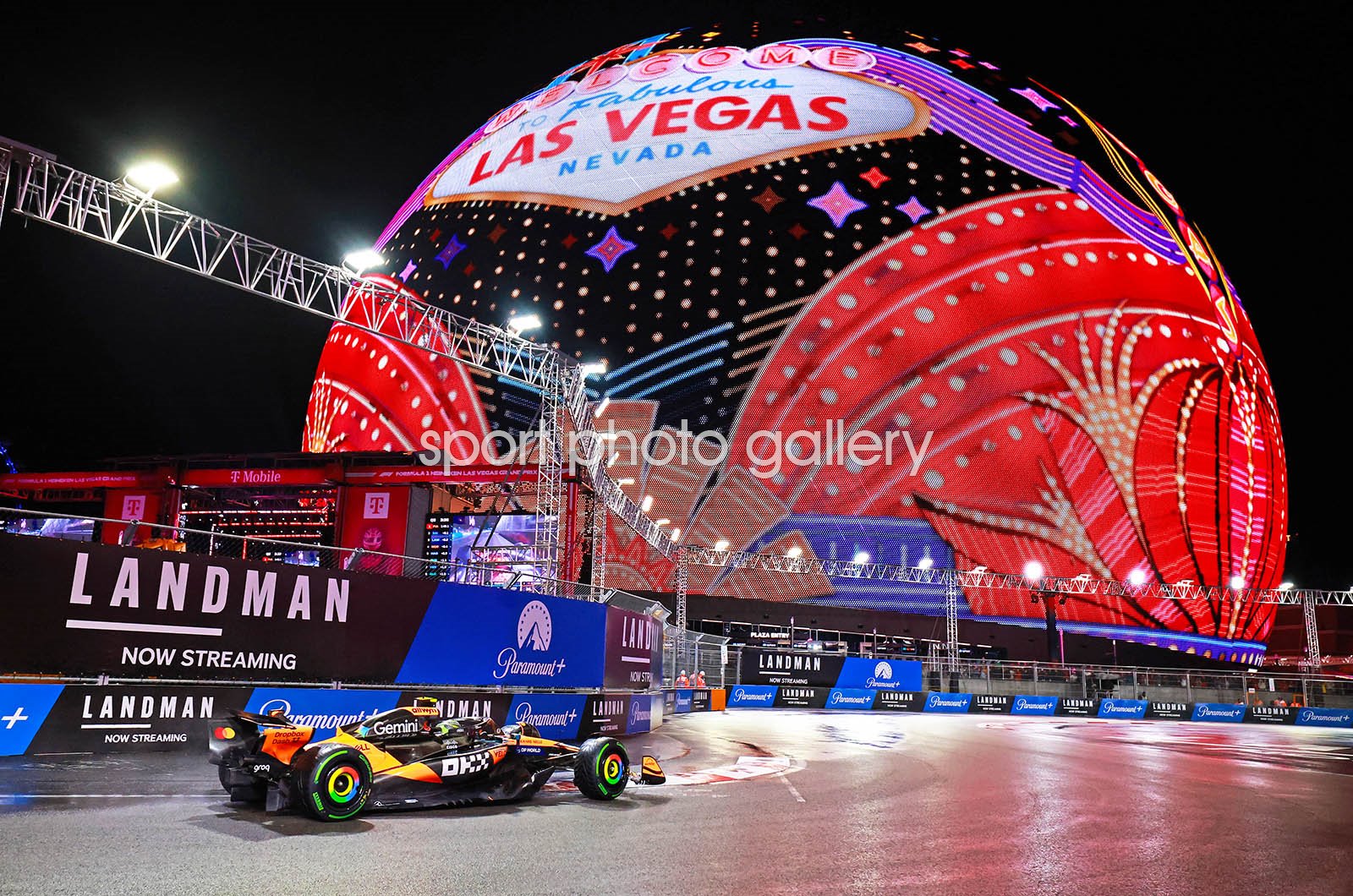 Lando Norris of Great Britain driving the (4) McLaren MCL39 Mercedes on track during qualifying ahead of the F1 Grand Prix of Las Vegas at Las Vegas Strip Circuit on November 21, 2025 in Las Vegas, Nevada. (Photo by Hector Vivas/Getty Images)