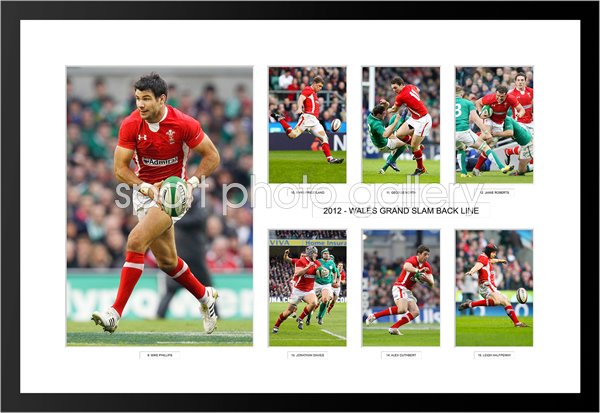 A stunning montage of images to celebrate the Wales back line - a vital part of Wales' 2012 Grand Slam success - arguably the most feared back division in world rugby - Mike Phillips (No. 9 Scrum Half), Rhys Priestland (No. 10 Fly Half), George North (No. 11 Wing), Jamie Roberts (No. 12 Inside Centre), Jonathan Davies (No.13 Outside Centre), Alex Cuthbert (No.14 Wing) & Leigh Halfpenny (No.15 Full Back)