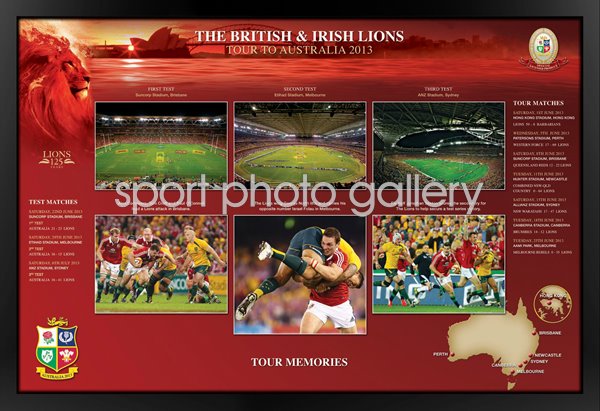 As with all of our licensed Lions product the print only option and fully framed option come complete with stunning 2013 Lions artwork together with all the tour information - venues, match scores and dates.