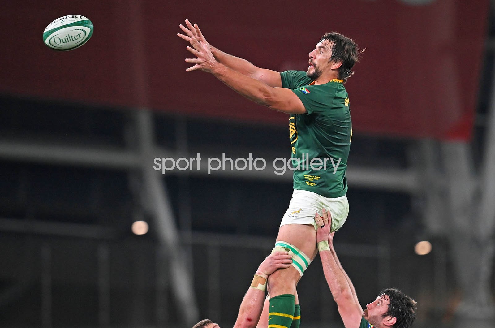 Eben Etzebeth of South Africa catches a line-out during the Quilter Nations Series 2025 match between Ireland and South Africa at the Aviva Stadium on November 22, 2025 in Dublin, Ireland. (Photo by Charles McQuillan/Getty Images)