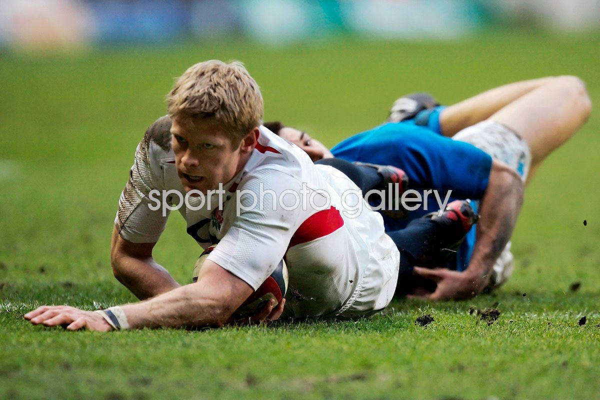 TWICKENHAM, ENGLAND - MARCH 12: Iain Balshaw of England scores a try during the RBS Six Nations International between England and Italy at Twickenham Stadium on March 12, 2005 in Twickenham, England. (Photo by Christopher Lee/Getty Images) *** Local Caption *** Iain Balshaw