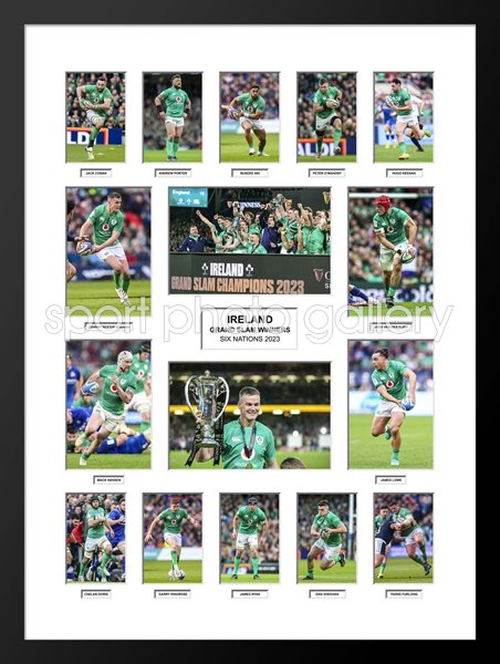Ireland 2023 Six Nations Grand Slam Team Special - we are delighted to offer this stunning collage to celebrate Ireland winning the Grand Slam in the 2023 Six Nations. The achievement was all the more special as the Grand Slam was secured with a win at home in Dublin against arch-rivals England.