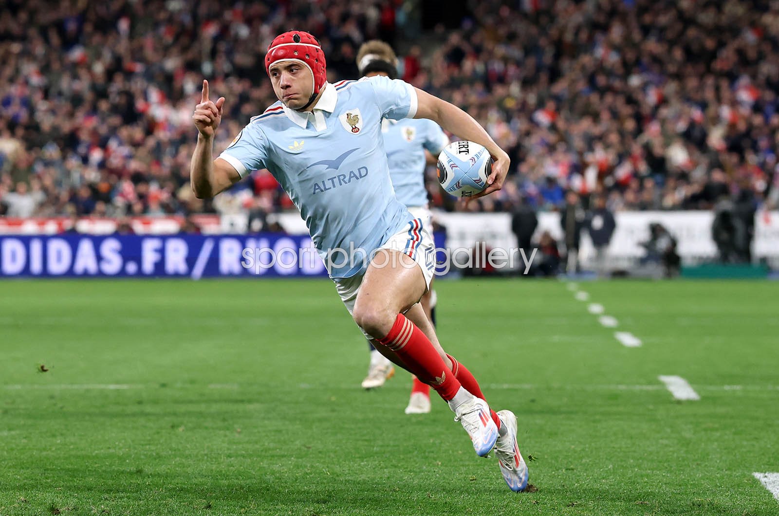 Louis Bielle-Biarrey of France runs in to score his team's first try during the Guinness Six Nations 2026 match between France and England at Stade de France on March 14, 2026 in Paris, France. (Photo by David Rogers/Getty Images) Code: 2266516283
