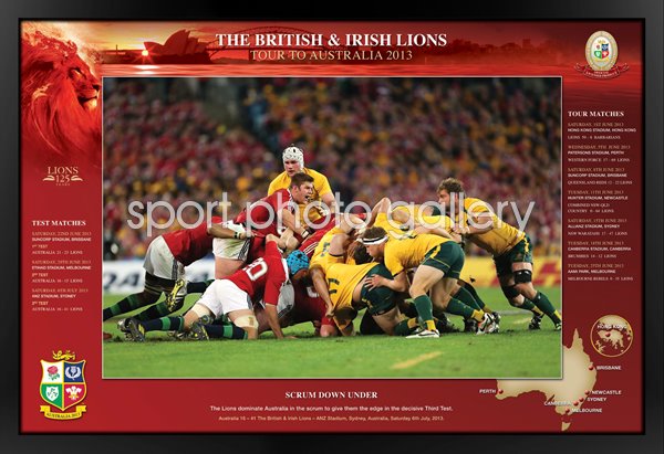 As with all of our licensed Lions product the print only option and fully framed option come complete with stunning 2013 Lions artwork together with all the tour information - venues, match scores and dates.