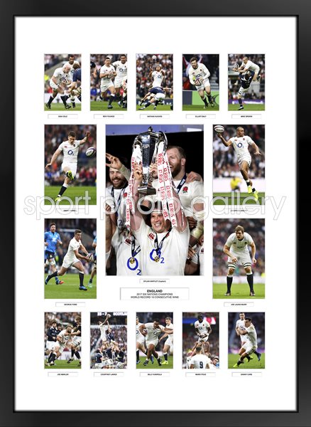 A stunning collage to celebrate England’s 2017 Six Nations Championship winning campaign. By beating Scotland in the penultimate game of the Championship England joined World Champions New Zealand on a World Record 18 consecutive International Tier 1 wins.