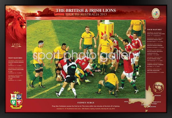 As with all of our licensed Lions product the print only option and fully framed option come complete with stunning 2013 Lions artwork together with all the tour information - venues, match scores and dates.