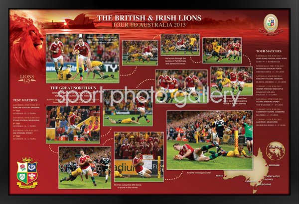 As with all of our licensed Lions product the print only option and fully framed option come complete with stunning 2013 Lions artwork together with all the tour information - venues, match scores and dates.