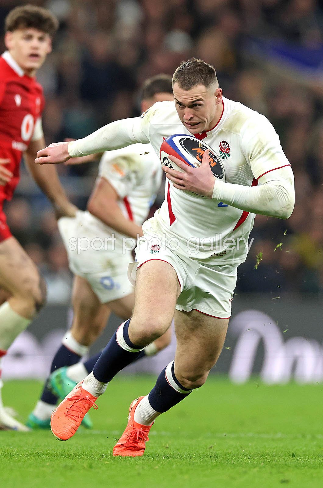 Tom Roebuck of England breaks with the ball during the Guinness Six Nations 2026 match between England and Wales at Allianz Stadium on February 07, 2026 in London, England. (Photo by David Rogers/Getty Images) Code: 2260502822