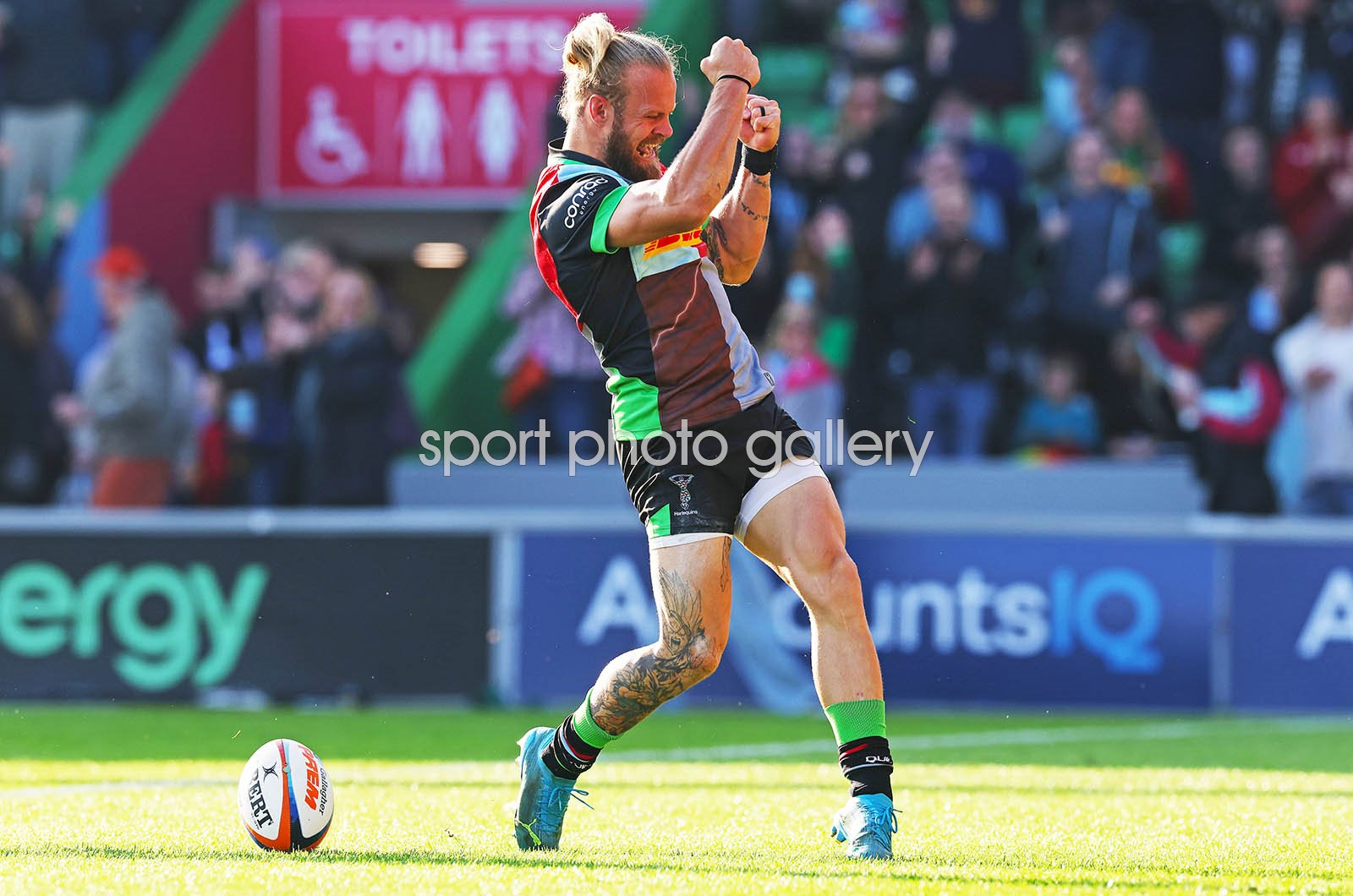 Tyrone Green Harlequins celebrates v Saracens Gallagher PREM The Stoop 2025