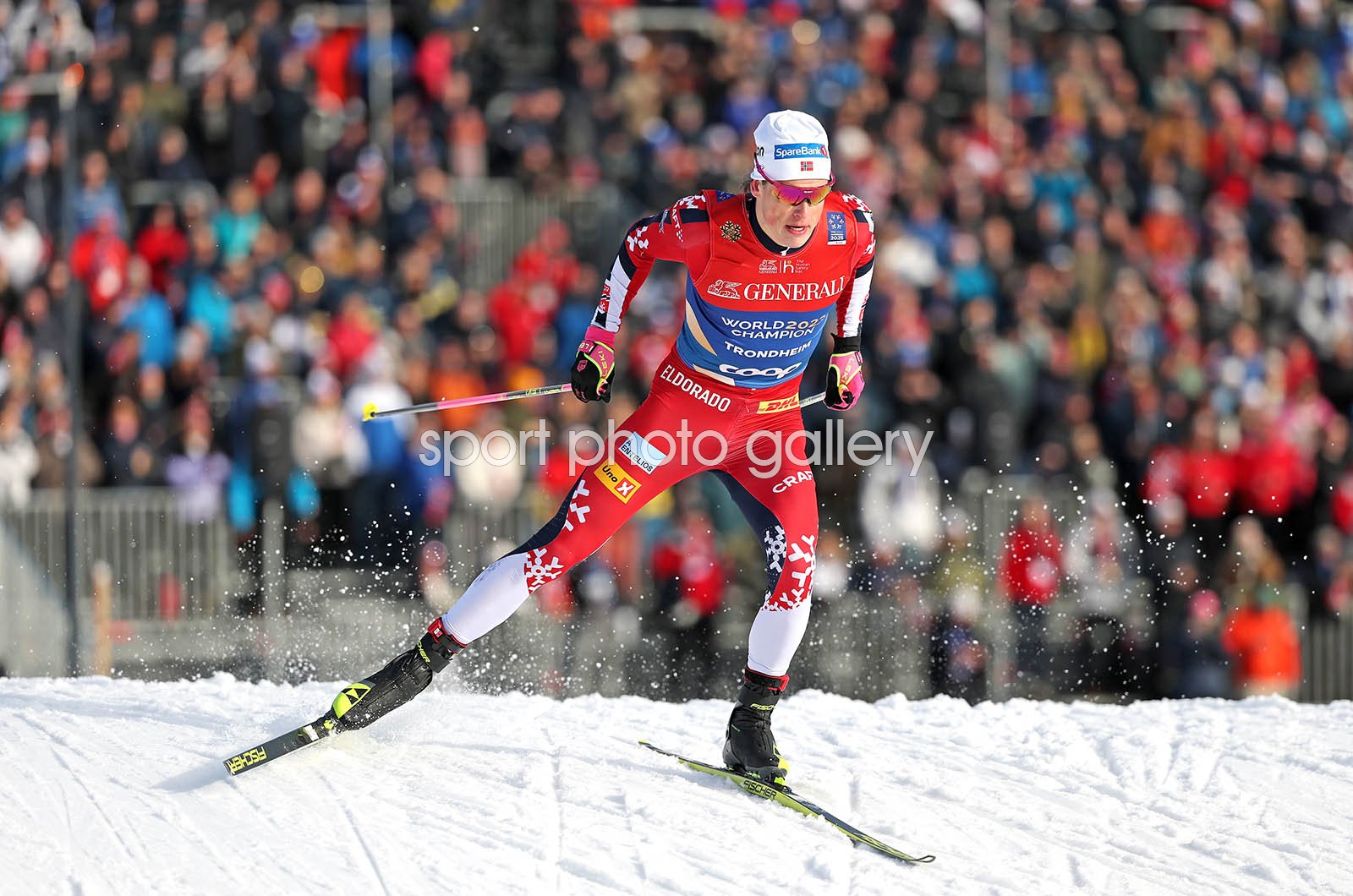 Johannes Hoesflot Klaebo of Team Norway competes during the Men's Individual Sprint F Qualification event in the FIS Nordic World Ski Championships Trondheim at Granasen Ski Centre on February 27, 2025 in Trondheim, Norway. (Photo by Lars Baron/Getty Images)
