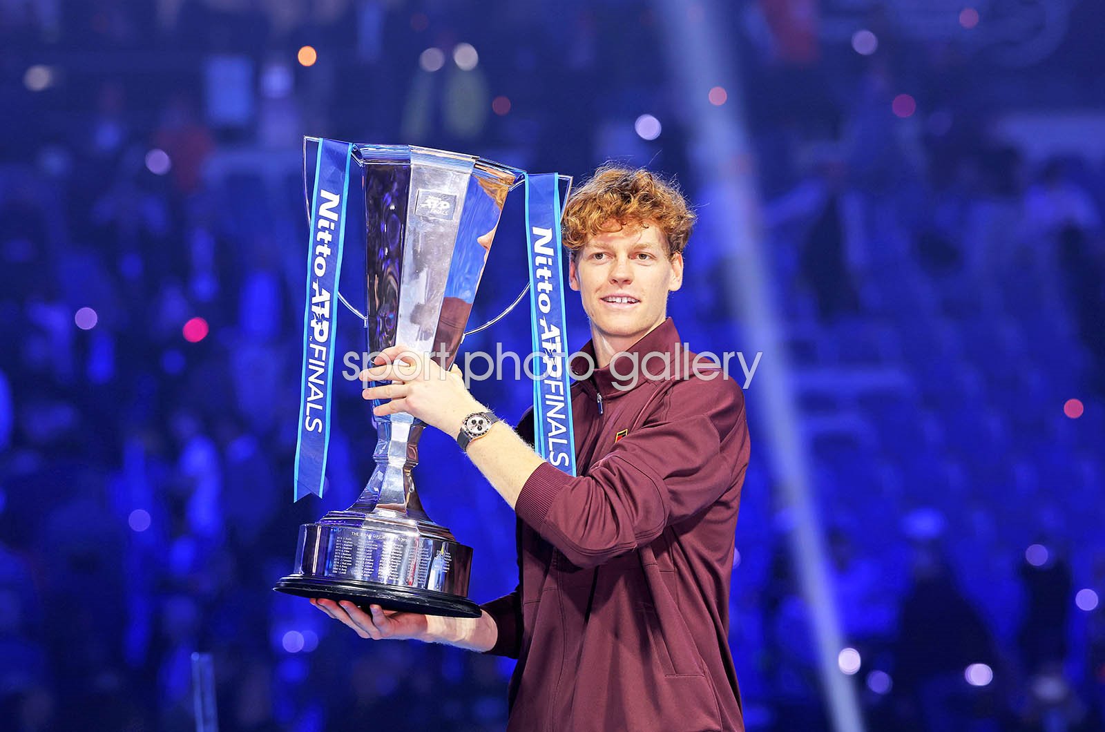 Winner Jannik Sinner of Italy lifts his trophy following the Men's Singles Final against Carlos Alcaraz of Spain on day eight of the Nitto ATP Finals 2025 at Inalpi Arena on November 16, 2025 in Turin, Italy. (Photo by Clive Brunskill/Getty Images)