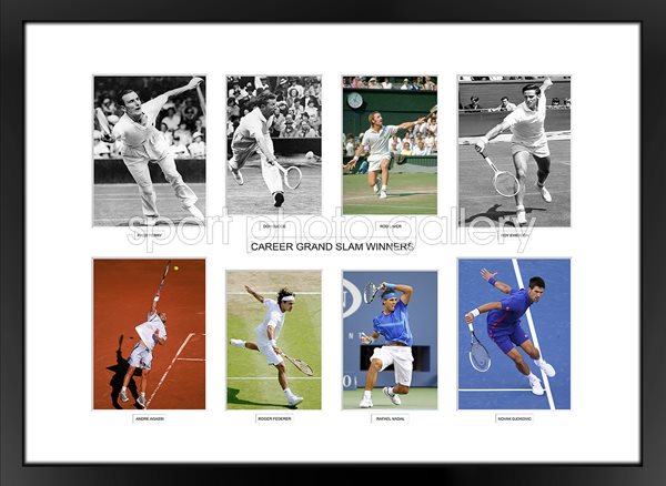 A stunning collage celebrating the exclusive group of players who have won all 4 Grand Slam titles during their careers – The Australian Open, The French Open, Wimbledon & The US Open.